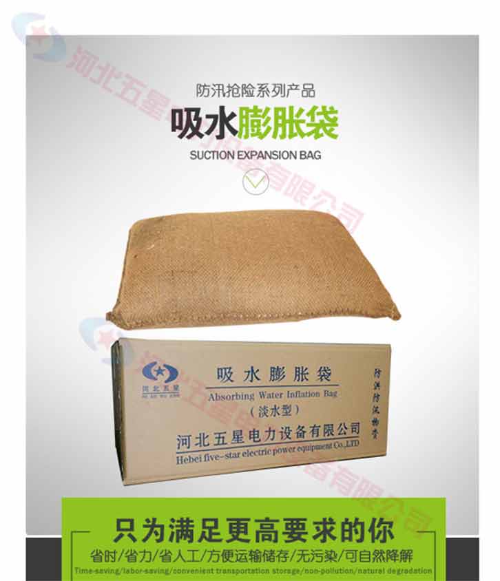 膨脹防洪袋,使用前體積小,重量輕,存放,運輸方便。與傳統的沙袋相比,在搶險防洪時大大減小時間和人力,另防洪搶險更有效率。吸水膨脹袋屬環保產品,無毒,無害,無味,無污染??勺匀唤到?。